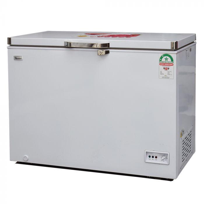 282 litres, White interior, Lockable door + Glass display, Castor Wheels, Low noise, Interior Light, Adjustable Temperature, 2 Cool pack + 2 Basket rack