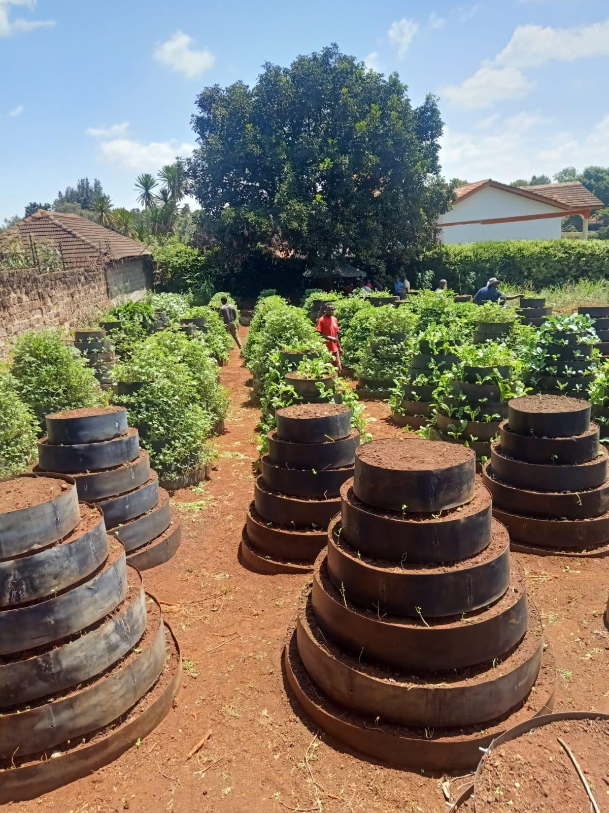 The multistory garden has 6 layers and holds 120 vegetable seedlings giving a harvest of 7kg per week. The price does not include soil, goat manure, or seedlings.