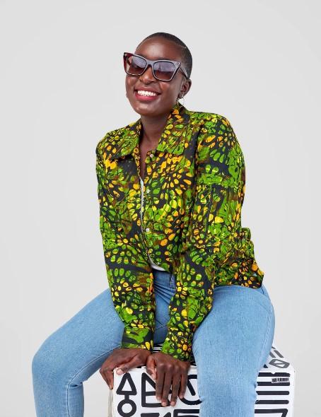 Named after the Swahili word for garden, the design reflects the lush harmony of nature. The interplay of green and black circles forms a captivating pattern and makes it a highlight for any wardrobe. The button-up design ensures easy recycling, embodying our commitment to environmentally conscious fashion. 100% cotton kitenge (outer), 65% cotton, 35% artificial polyester (lining). Features: collar, one chest pocket, two shoulder pockets, one sleeve with zipper Care: Machine wash, 30 degrees, cold cycle with similar colors.