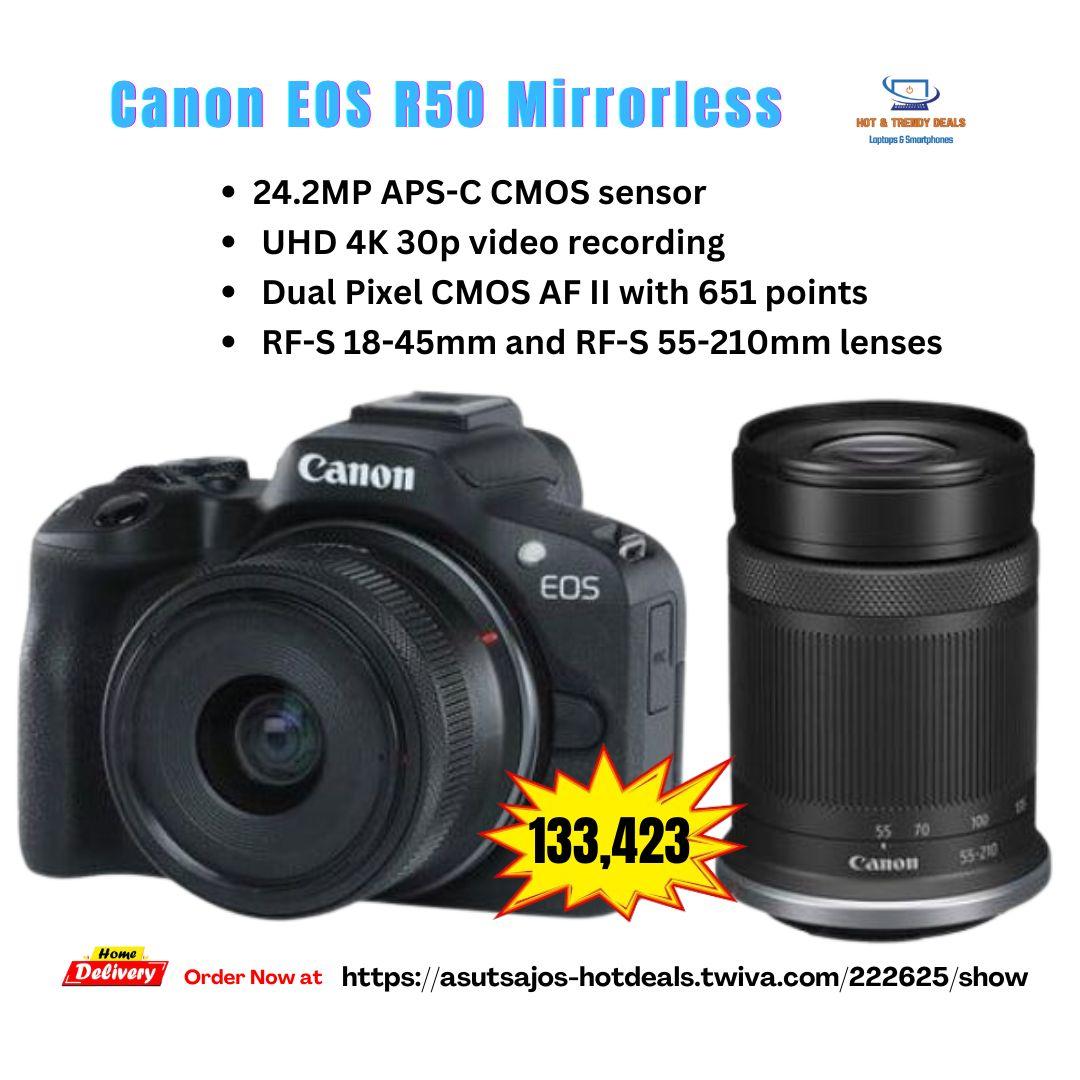 *24.2MP APS-C CMOS Sensor *DIGIC X Image Processor *UHD 4K 30p Video Recording *Dual Pixel CMOS AF II with 651 Points *2.36m-Dot Electronic Viewfinder *3.0″ 1.62m-Dot Vari-Angle Touchscreen *15 fps Electronic Shutter *Multi-Function Shoe, UVC Livestreaming *RF-S 18-45mm f/4.5-6.3 IS STM Lens *RF-S 55-210mm f/5-7.1 IS STM Lens