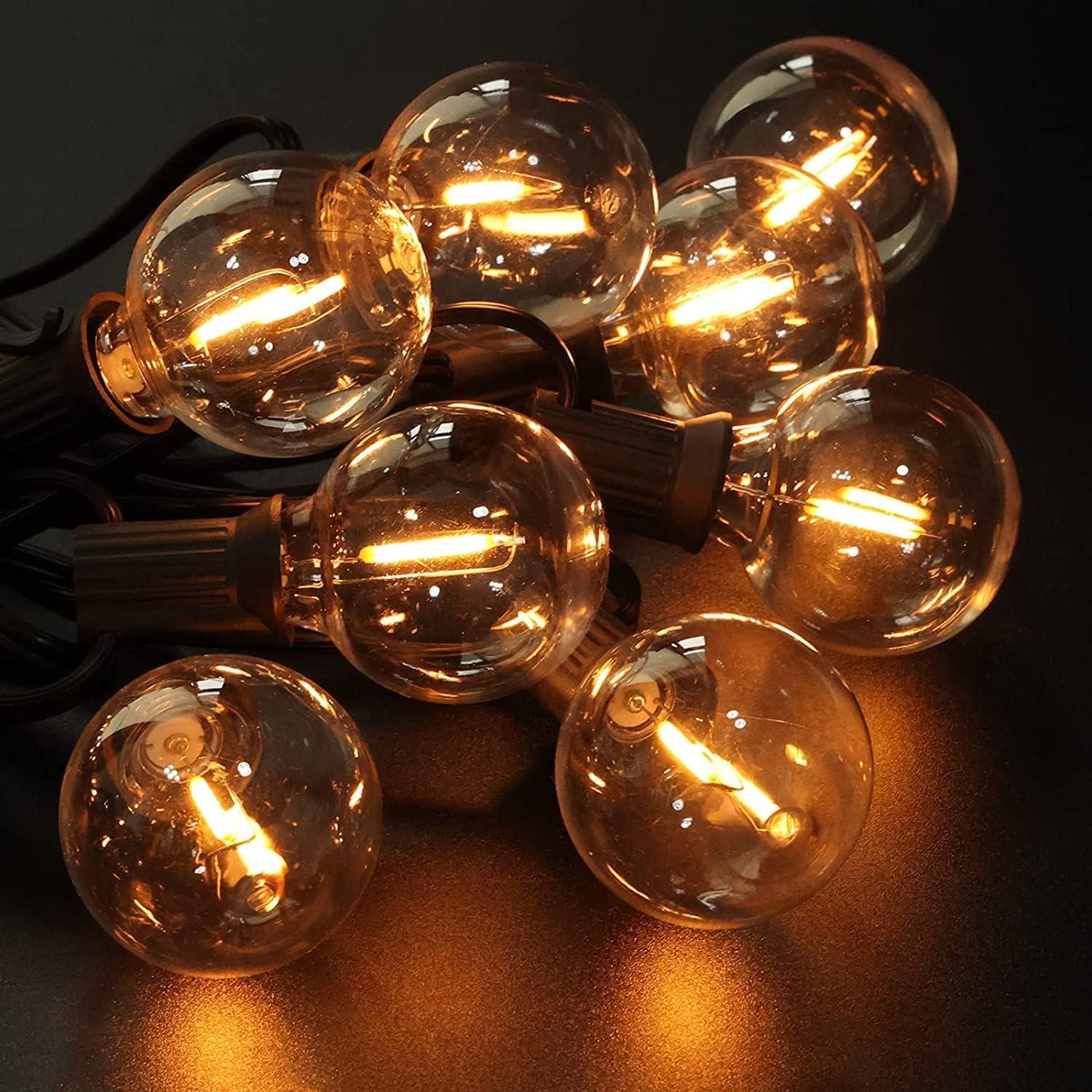 Specifications: G40 Bulb Solar Warm White 7.62meter/ 25Feet Bulbs: C7/E12 socket base *25 Bulb material: Shatterproof plastic IP Rating: IP44 waterproof Color Temperature:Warm glow 2200K 25Bulb +2Spare Shatterproof Solar Panel 5w / 5.5V mono / Battery 6600maH UK Elec Adaptor Remote Control