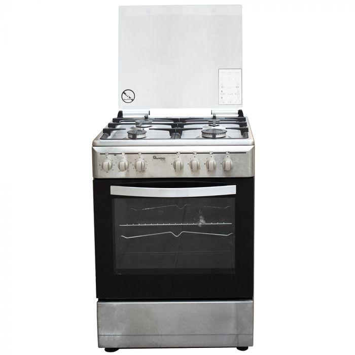 4 gas pool burners, Sealed double glass oven door, Rotisserie, Stainless steel with a glass lid, Auto Ignition, Electric Oven