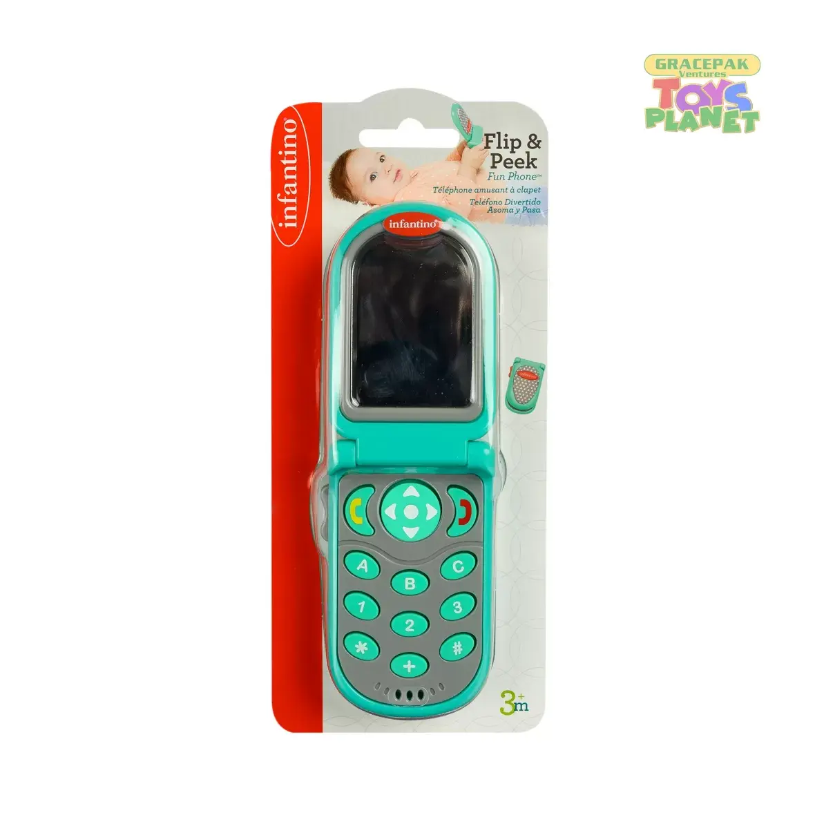 Calling all babies! Here is a fun phone to flip over. Includes fun sounds, greetings and phrases. Encourages bi-lingual learning with 3 English and Spanish phrases. Fun peek-a-boo mirror and 3 more phone sound effects captures interest and creates additional engagement.