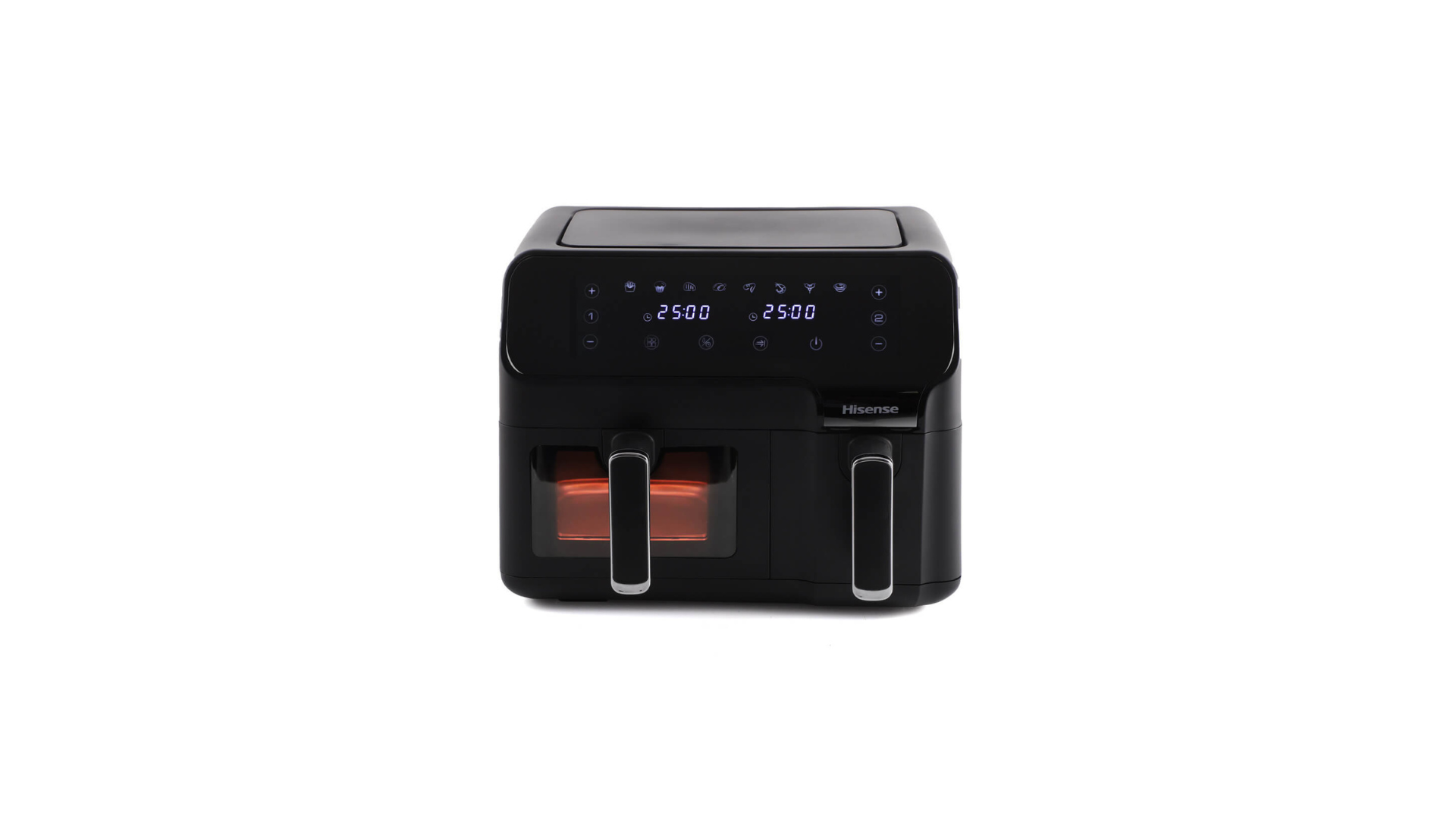 Hisense H09AFBK2S5 8.6L Dual Airfryer comes with a heat action of up to 200 degrees and internal ventilation, that enables you to get crisp results without using fat and enjoy healthy and tasty frying. The air fryer uses hot air to cook with very little or even without added oil. So you can fry using up to 90% less fat. Enjoy delicious and crispy foods as if fried but with minimal fat. Thanks to the 8 automatic cooking programs on Hisense H09AFBK2S5 8.6L Dual Airfryer, you will have excellent temperature and duration for 8 recipes. Hisense H09AFBK2S5 8.6L Dual Airfryer has a 3.3L non-stick coated basket plus a 5.3L outer container that offers enough cooking space for the whole family or to organize a dinner with friends. Enjoy delicious and healthy meals at home with a versatile and easy-to-use air fryer that delivers perfect results in no time! The compact design saves kitchen space and energy, while the dishwasher-safe basket and precise temperature control ensure a hassle-free cooking experience. Discover hot air technology for tasty air-fried foods with less oil—from perfectly crisped French fries to vegetables and even desserts