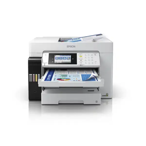 Multifunctionality: The L15160 supports printing, scanning, copying, and faxing, making it an all-in-one solution for office needs. High-Speed Printing: Capable of printing up to 32 pages per minute (ppm) in both monochrome and color on plain paper (75 g/m²). Duplex Printing: Automatic duplex printing at a speed of 21 A4 pages per minute for both monochrome and color. Efficient Scanning: Single-sided scan speed (A4 black): 26 images per minute (ipm) with the ADF, 5 seconds with the flatbed. Double-sided scan speed (A4 black): 11.5 ipm with the ADF. Single-sided scan speed (A4 color): 9 ipm with the ADF, 10 seconds with the flatbed. Double-sided scan speed (A4 color): 6 ipm with the ADF. Fast Faxing: Transmission speed of up to 33.6 kbps, approximately 3 seconds per page. Large Capacity ADF: 50-page Automatic Document Feeder for efficient multi-page scanning and copying. Output Tray Capacity: Can hold up to 250 sheets, reducing the need for frequent paper reloading. Versatile Connectivity: Equipped with USB, Ethernet, Wi-Fi, Wi-Fi Direct, and USB host interfaces, allowing for flexible and convenient connection options. User-Friendly Display: 4.3-inch touchscreen for easy navigation and control of printer functions. Compact and Robust: Weighs 20.9 kg, making it a sturdy and durable choice for office environments.